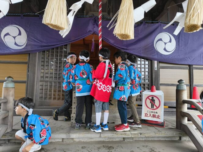 法被とハチマキで身支度して、みんないつもの制服姿とはちょっと違う雰囲気です。