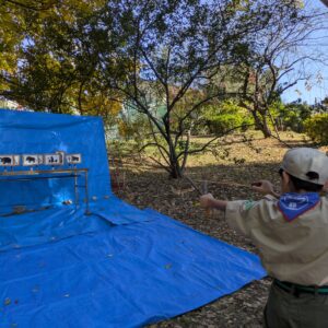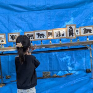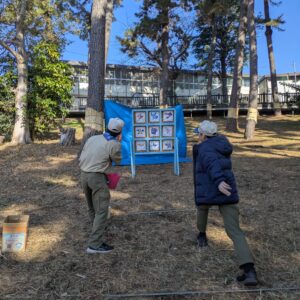 射的コーナーでは、善部の森の枝で作ったパチンコを飛ばします。子どもたちと一緒に保護者の皆さんも挑戦したい方が続出、歓声が響いてました。