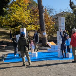 ダンボール積み競争!チームに分かれて制限時間に積んだ高さを競います。