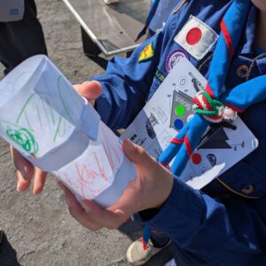 キャンプやミカン狩り、カヌーにハイキング、65団の楽しい活動を紹介していました。家族旅行では経験できない貴重な体験ばかり、興味津々に見てくださる方もたくさんいました。