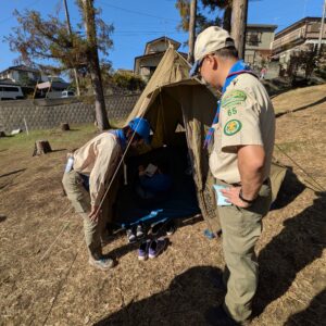 ボーイ隊が建てたテントがありました。中には寝袋もありますよ。