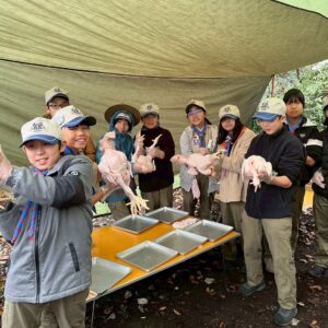朝早くからボーイ隊が鶏の丸焼きの仕込みをしています。