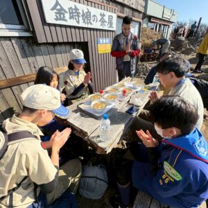 ご褒美のなめこ汁をみんなで頂きます。体が温まってとっても美味しかったです。