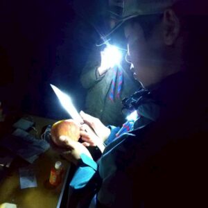 日も暮れてきたので、ヘッドライトで食事を作りました。