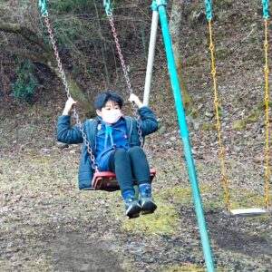 あれ、バス停に着くなり近くのブランコに向かう姿も。まだまだ元気が残ってたようです。