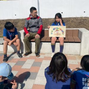 BP紙芝居の読み聞かせもありました。くまスカウトたちの読み聞かせはとっても上手で、みんな夢中になって観ていました。