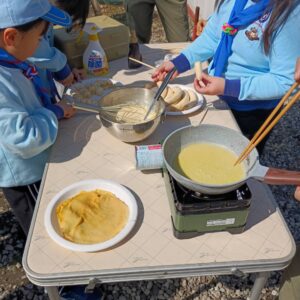 ビーバー隊は、春キャンプで作るクレープの練習をしました。