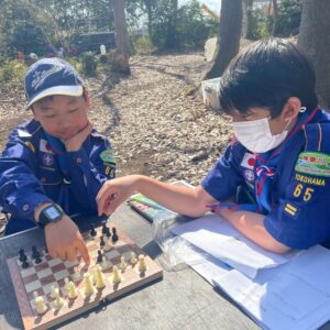 途中で隊長が様子を見に近寄ったら、本番までのお楽しみにしてもらいたいスカウト達は