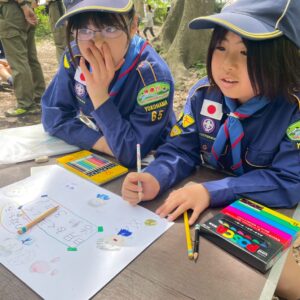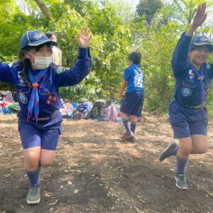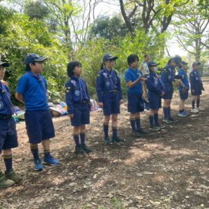 りすスカウトはりすの道をまなび、しか、くまスカウトは整列の練習をしました。