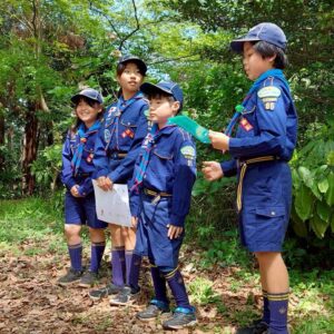 新しいスカウトに隊長から大切なお話もありました。ビーバーと違うカブの活動は、最初は戸惑うこともあるかもしれません。カブスカウトとして守って欲しい事の約束をしました。